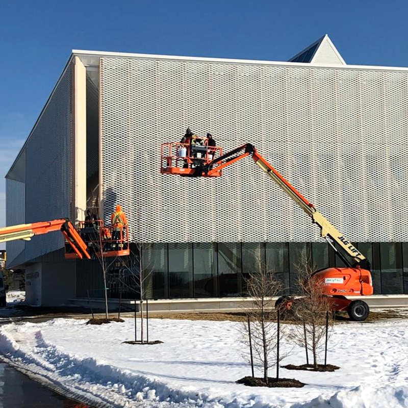 鋼板網(wǎng)幕墻一般采用3mm-5mm厚的鋁板制作,輕巧堅固。 具有陽極氧化或 PVDF 涂層飾面的鋼板網(wǎng)不僅具有迷人的外觀,而且具有出色的耐候性和較長的使用壽命。 因此,它在建筑師和設(shè)計師中越來越受歡迎